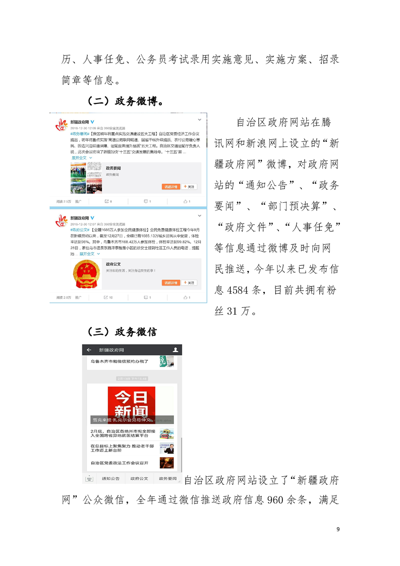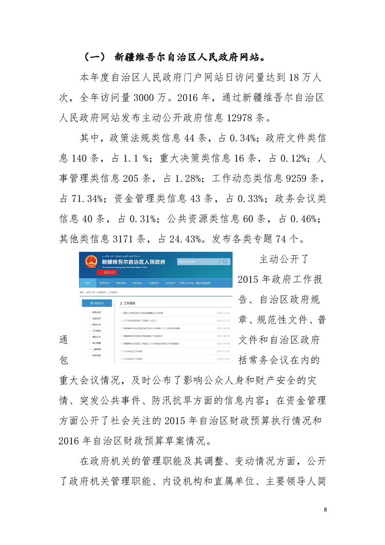 新疆维吾尔自治区人民政府机关2016年度政府信息公开工作报告