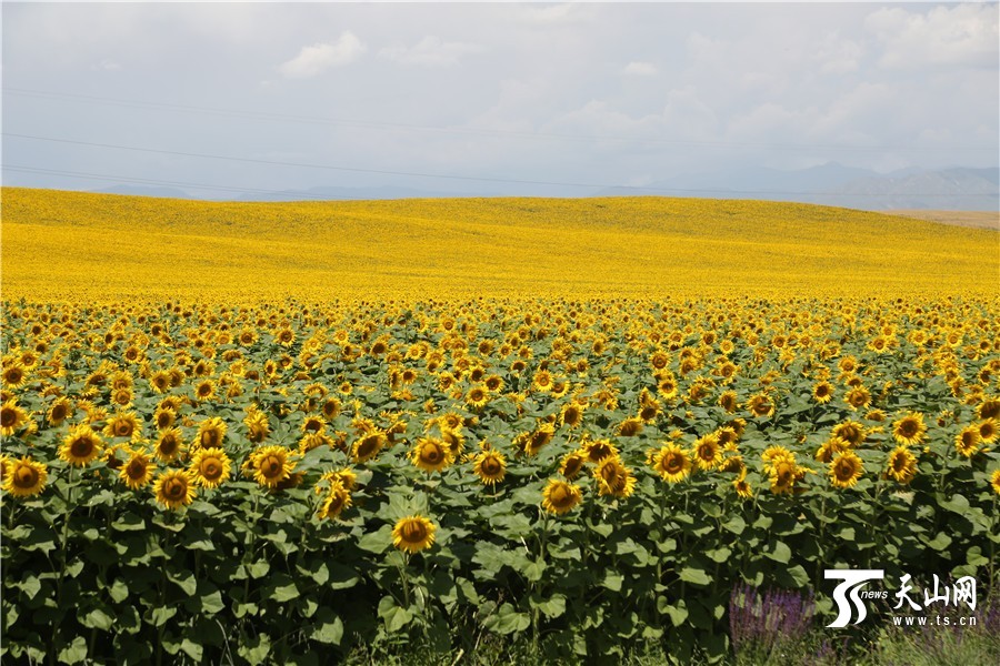 新疆昭苏县独特的大陆性温带山区半干旱半湿润气候,没有明显的四季之分,春秋时节气候湿润,雨水充沛,温度凉爽宜人,所以八月昭苏草原依旧百花争艳,在这里你会发现成片的向日葵、香紫苏、油菜花,还有散落在草原上不知名的野花。绿色的草原、紫色的香紫苏、蓝色的天空、白色的天山雪峰,还有金黄的麦田、油菜花、向日葵等,勾画了独特的七彩昭苏图画,无不令人向往。