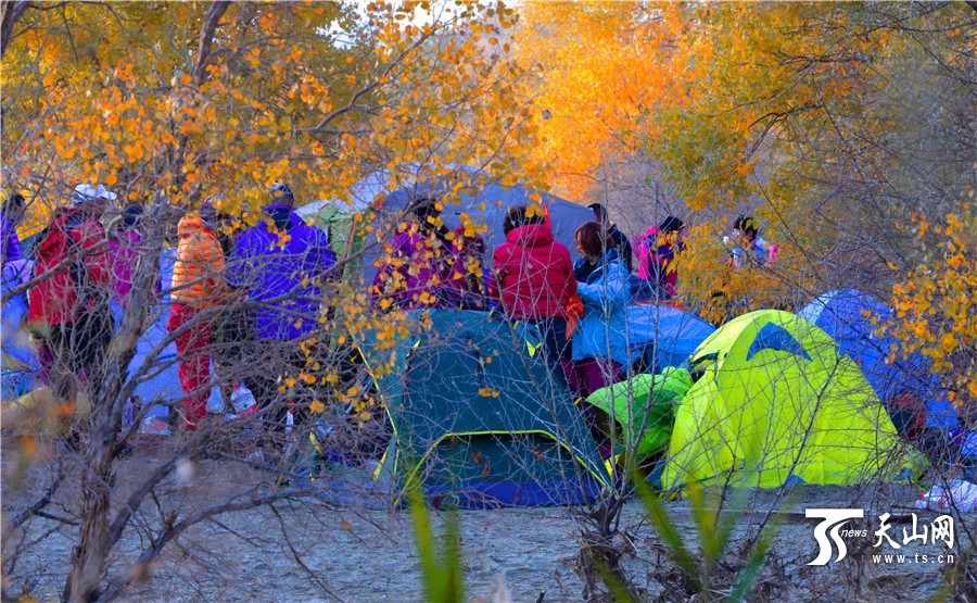 2016年10月30日,前来观赏胡杨的游客。
