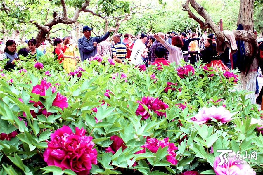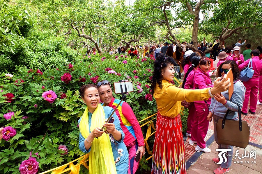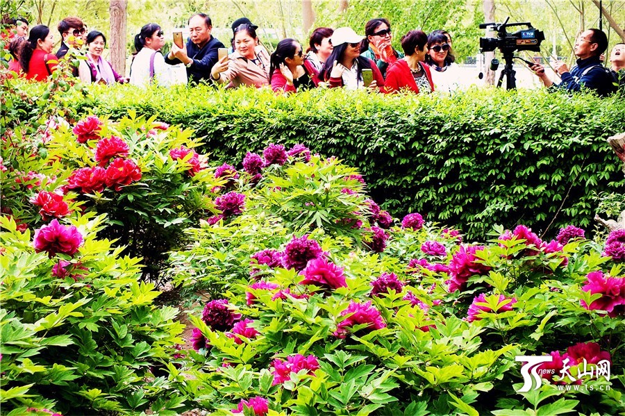 4月23日,新疆库尔勒市孔雀河畔梨香园里的杏花、桃花、迎春花、梨花芳菲刚落,素有“富贵花”之称的牡丹又进入了盛花期。艳冠群芳的牡丹争艳斗丽,姹紫嫣红,雍容华贵,美轮美奂,如同一幅美妙娇丽的画卷,把沙漠边城库尔勒春季赏花游热潮推向顶峰,市民春潮般前呼后拥奔进梨香园,去感受梨香园里正在上演的最美春天。