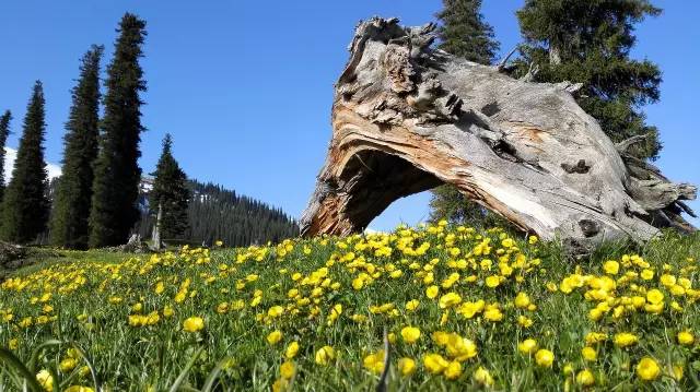 如果说草原总是以湛蓝的天空、洁白的云朵和成群的牛羊让人流连忘返,那么那拉提的空中草原则以她独特的魅力,让人时时牵挂。