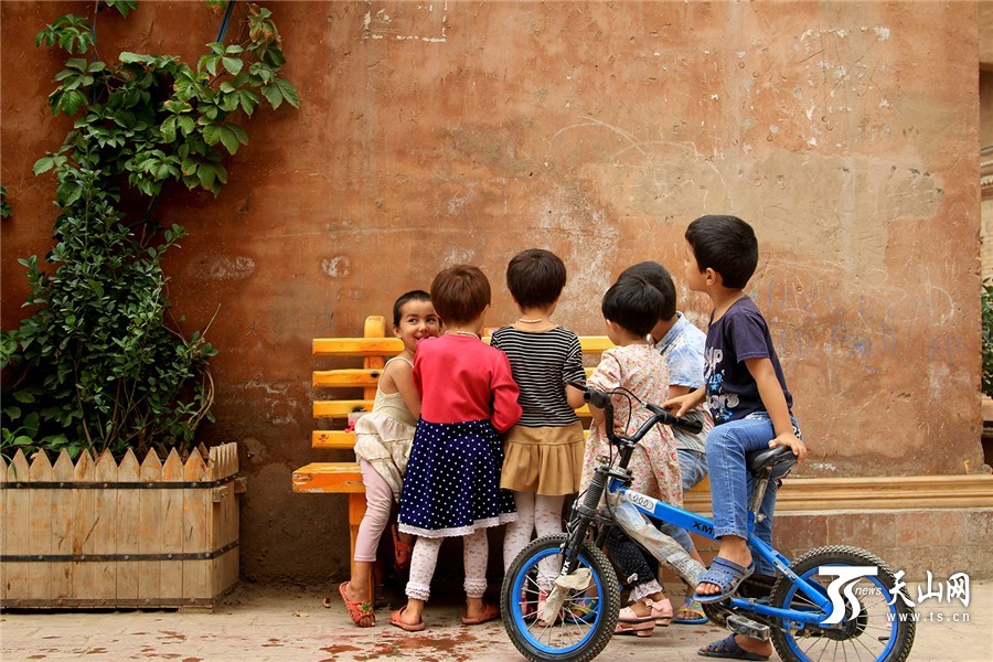艾提尕尔清真寺广场旁玩耍的小朋友
