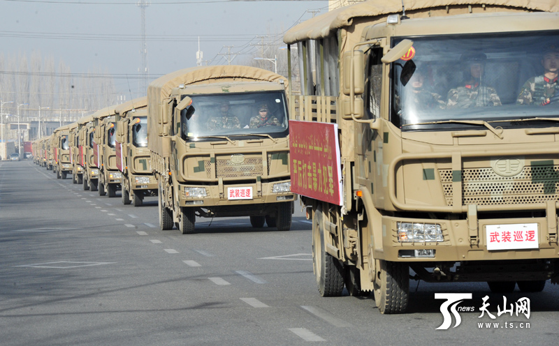 武警官兵在和田市主要街道和重点部位进行武装巡逻。(新疆日报记者卢民一 阿扎提?玉素甫江摄)