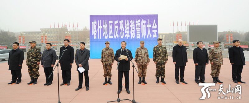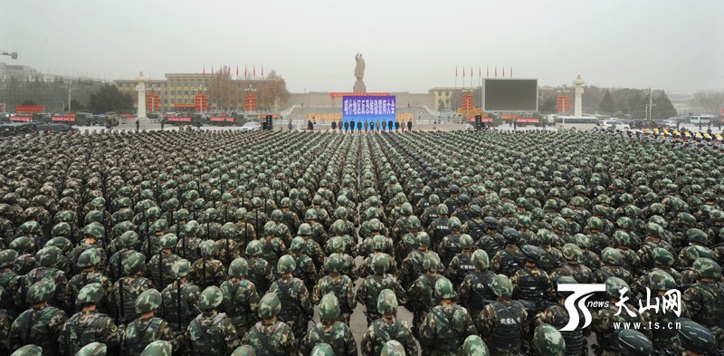 2月17日,自治区反恐维稳誓师大会在喀什举行。(新疆日报记者卢民一 约提克尔·尼加提摄)
