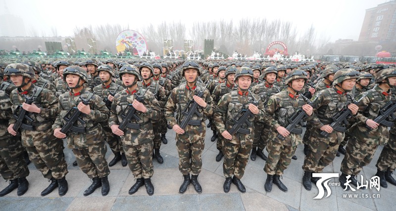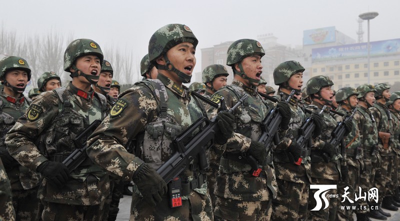 2月17日上午,“扬威震慑 武装拉动”自治区反恐维稳誓师大会在喀什举行。喀什市人民广场上,一辆辆武装车辆披坚执锐,涂装着迷彩的现代化反恐装备在阳光下熠熠生辉。武警官兵、公安特警等维稳力量严阵以待,脸上写满忠诚与坚毅。“听党指挥,能打胜仗,作风优良!”宣誓声响彻云霄。