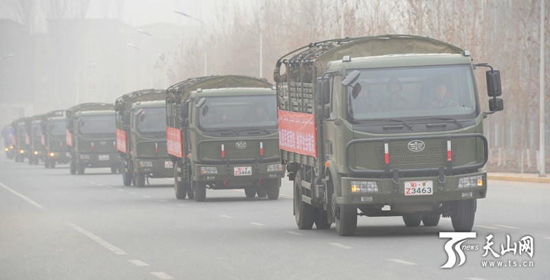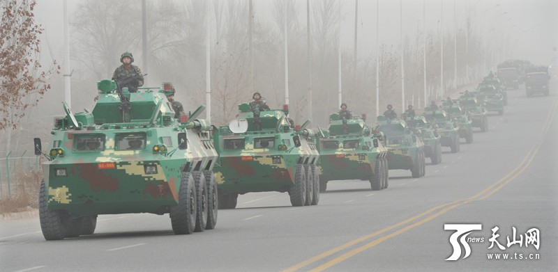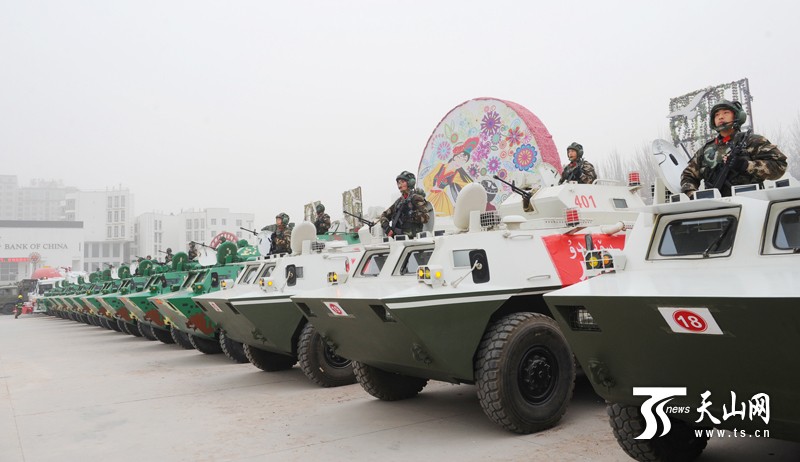 参加誓师大会的武警官兵向任务区进发,进行武装巡逻。(新疆日报记者卢民一 约提克尔·尼加提摄)