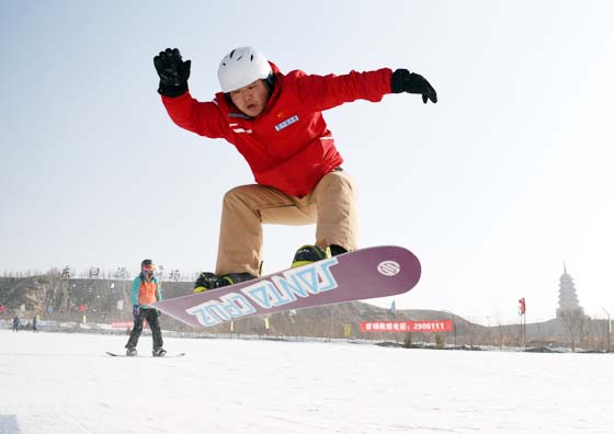 图为 1月9日,市民正在巴州库尔勒市一家滑雪场内滑雪。