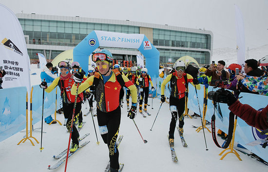 正式开赛前,组委会特别设置了一场刺激趣味的短距离滑雪登山。由中国登山协会副主席续川鸣枪,6名外国选手与6名阿勒泰当地人混合组成两队,分别使用现代滑雪登山雪板,以及古老的阿勒泰毛皮滑雪板竞速前进。阿勒泰毛皮滑雪板具有良好的止滑功能,尤其适合雪地行走和上坡,至今仍是非常实用的交通工具,让欧洲选手赞叹不已。